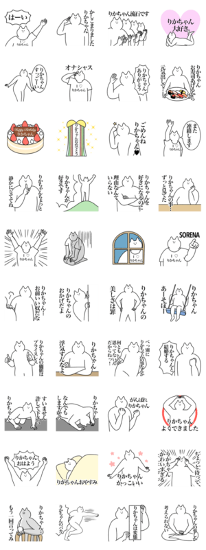 りかちゃんに送る流行の名前スタンプ。大好きな彼女や友達に。 可愛い面白いシュールなリカさんへ。理香、利香、理佳、莉香、里佳、梨香、梨佳、莉花、里香など。