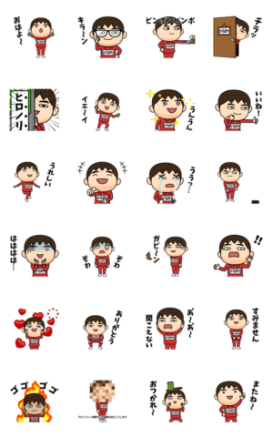 ひろのりが使うアニメーションスタンプ。ジャージになまえが入っているので、名前スタンプでありながら自然な言葉で会話ができる優れモノ。昭和レトロなダサ男の面白い動き