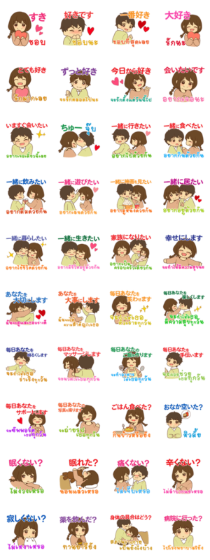 ラブラブな恋人のスタンプ、タイ人または日本人の恋人や大好きな人に素直な気持ちを届けよう。