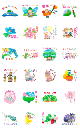 イラストレーター・絵本作家「永田萠」が描く、第3段 入園入学や卒業、新生活など…出会いや別れ、お礼の場面に使える挨拶を丁寧に伝えられるかわいいスタンプです。妖精村 より発売