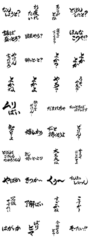 筆文字のスタンプ。毎日使える博多弁、九州弁。イッレ・コスヤ より発売