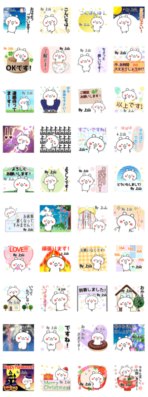名字(苗字)が上山(うえやま かみやま)さん専用の敬語入り名前スタンプです。クリスマスと年賀状(お正月)挨拶入り。上山さんへのプレゼントにもどうぞ。