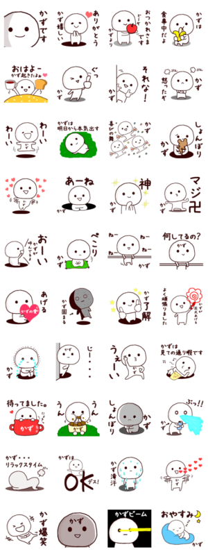 かずさん使える名前、あだ名スタンプです。 プレゼントとしてもどうぞ♪かずよ、かずこ、かずみ、かずとし、かずお、よしかず、ともかず、かずき、かずひこ、カズ