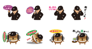 50代孤高のラッパーSOUL FIELDのMC JUNのキャラクターとマカロン犬のコラボスタンプ第一弾です。