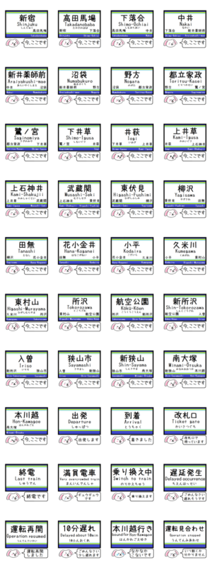 西武電車の新宿線 今この駅だよ!タレミー スタンプ画像一覧