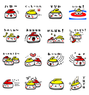 かわいいカーリングのイラストのスタンプです。前田ムサシ より発売