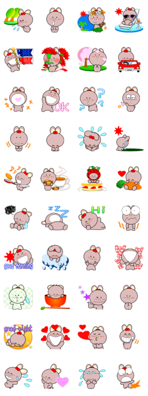 おはぎ色したウサギ おはうさの楽しいスタンプです。今回はほぼ文字なし。花粉症や鯉のぼりや夏休みや母の日に役立つスタンプあり。ohausa より発売