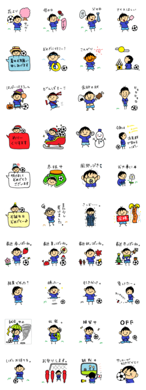 日常スタンプに引き続き、サッカー大好き少年の春夏秋冬+サッカーにちなんだ色々なスタンプsetです。Soracocoro-coco より発売
