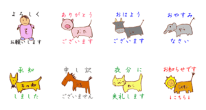 まりりん画伯の敬語スタンプです。なかなか味があります!(^^)!