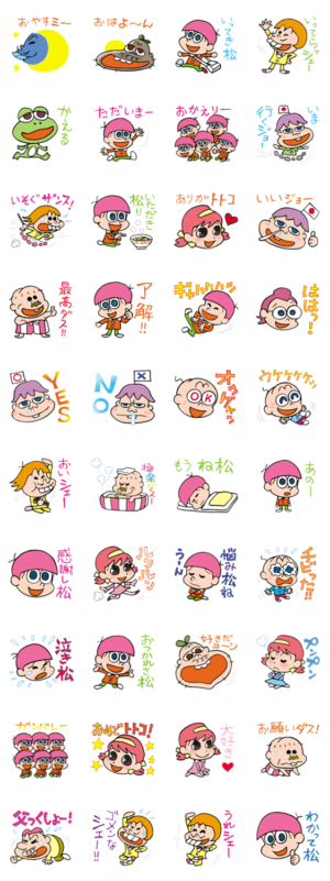 おちょ松くんのスタンプは、幅広い方に使えるスタンプです!キャラクターのいろいろな表情がとても可愛いです!
