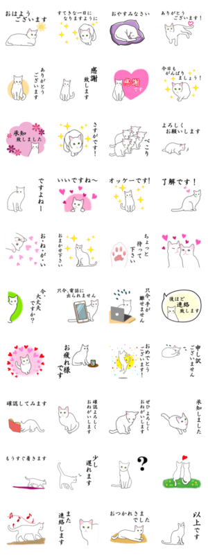 シンプル黒猫☆シリーズの白猫バージョン出ました♪日常よく使う敬語を集めました!先輩、ママ友、そしてお仕事でも使いやすい♪