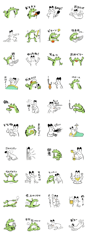 ウサギとカエルが動き回るマンガの元祖といわれる鳥獣戯画をアレンジした「ダ鳥獣ギ画」 スタンプその3。動物なのに人っぽい動きのうさぎがかわいい。TOPECONHEROES より発売