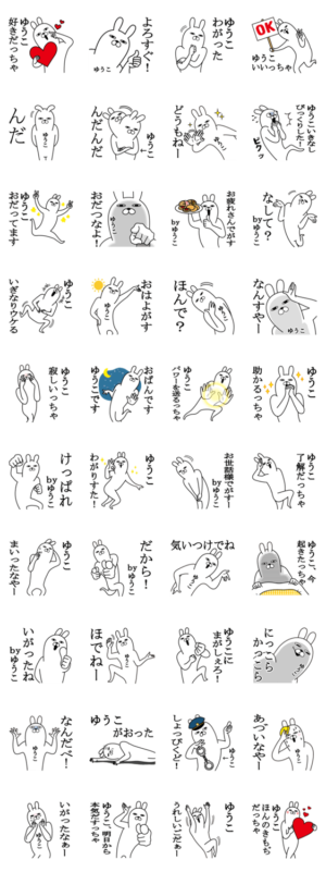 ゆうこが使うスタンプです。ユウコ,悠子,優子,祐子,由子,裕子,夕子,有子,佑子,結子,郁子,邑子,東北の青森弁,岩手弁,山形弁,福島弁,秋田弁も使える