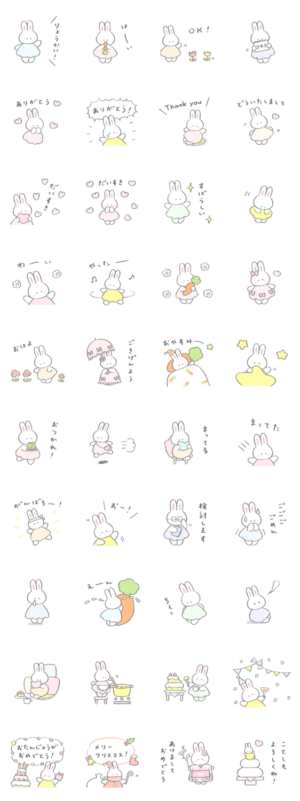 若干ファンシーなうさぎスタンプです。 よく使う言葉やイベントなど。Maki より発売