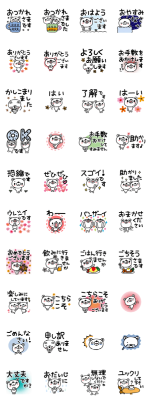 しろくまの敬語バージョン。ありがとう、お疲れ様、OK、かしこまりましたなど基本の言葉セットです。オフィスや仕事先、先輩に!