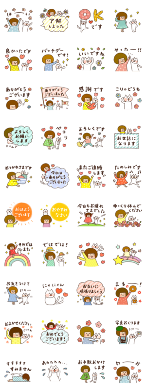パステルカラーでほんわか優しく♪日常のお返事やお礼など、使える敬語がいっぱいのスタンプです。ときどきネコも一緒にお返事しますよ。