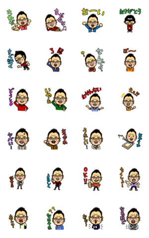 似顔絵スタンプの男性バージョン第2弾です。雰囲気が似ている人なら誰でも自分の分身として使えます。言いにくいことも代わりに言ってくれますよ♫