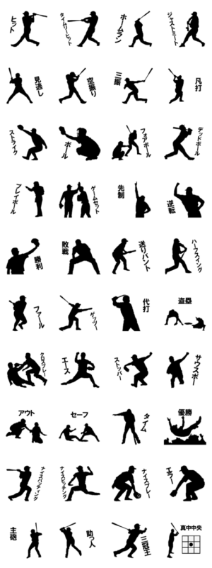 プロ野球・メジャー・高校野球・草野球、とにかく野球好きのためのスタンプです。野球用語・シチュエーションをモチーフとしています。t.susan より発売