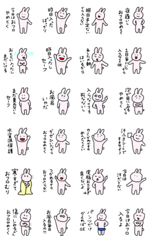 お風呂がとにかく嫌いなウサギ スタンプ画像一覧