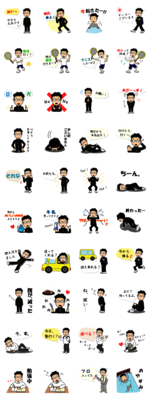 学校に部活に塾に、がんばるメガネ男子学生のためのスタンプこた より発売