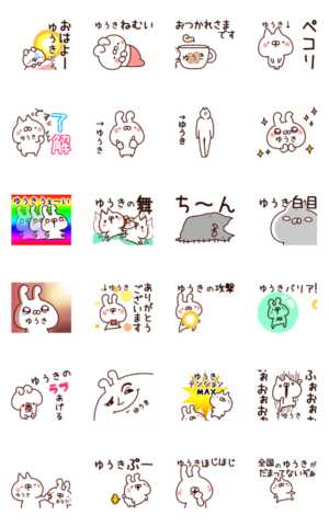 ゆうき/ちゃん/さん/くん/名前/あだ名/名字/スタンプ/ユウキ/勇気/結城/結希/柚生/優木/優希/遊記/有希/祐希/佑樹/有紀/裕貴/勇樹/裕樹/悠希/夕樹/動く専用10/山田まぽん作山田まぽん/名前スタンプ より発売