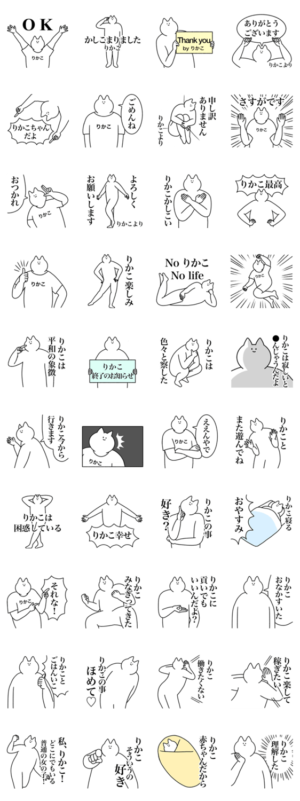 りかこちゃんの名前スタンプです。敬語多め。 可愛い面白いシュールなリカコチャンへ。理香子、里佳子、利香子、莉花子、理佳子など。/oroninet