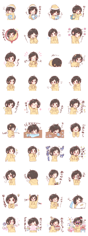 女の子のためのスタンプ第7弾です!★ 黄色のパーカーのあの子が登場!!ぽちっと添えると、のほほん気分になれるかも・・・♪toco より発売