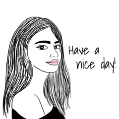 外国の女の子のモノクロでシンプルなイラストです。 海外好きな方にオススメです! ぜひ、使って下さい!!YURRY.Y より発売