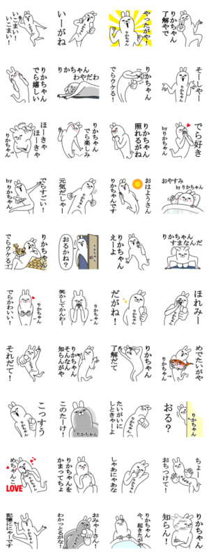 りかちゃんが使うスタンプ。りかこ,里花,里香,利香,理香.梨華,梨花,梨香,梨香子,利加子,リカ,りか子,理香子,里佳子,りかな,三河弁,岐阜弁,静岡弁,三重弁の方も使える