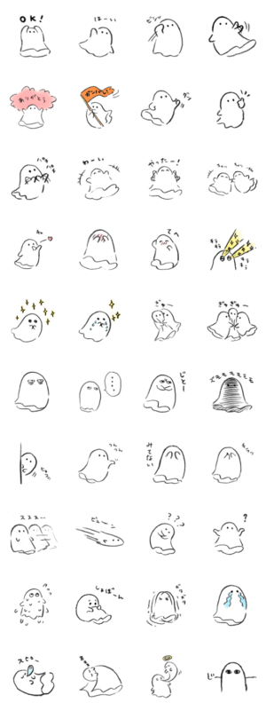 ゆるくてかわいいおばけです。鉛筆での手描き感を大事にしました。ミケうさぎ より発売