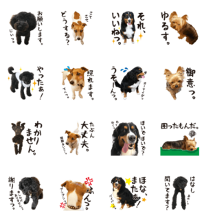 可愛い看板犬たちの日常で使えるスタンプ第2弾です。 プードル/ジャック・ラッセル・テリア/バーニーズ・マウンテン・ドッグ/ヨークシャテリア