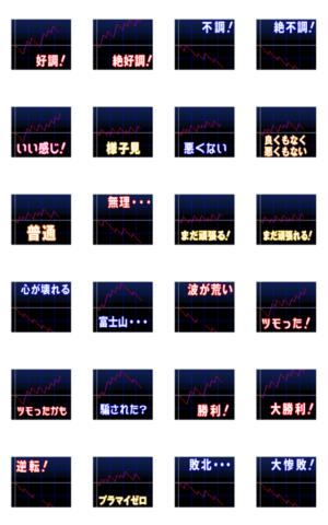 スランプグラフのアニメでフリー!もしくはチャートや研修として株やFX,仮想通貨についてもスタンプできるよ! 君も裏の動く線で色々な動きをフルスロットルで返信や連絡
