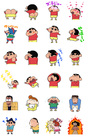 クレヨンしんちゃんと仲間達のスタンプなので、バリエーションがあって楽しいです。