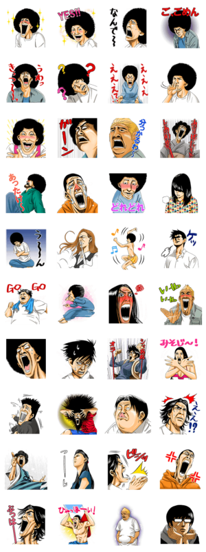 強烈なアフロヘアーの外見とは裏腹に小心者の田中広と仲間たちの日常を描いた人気ギャグ漫画がスタンプに登場!思わず笑顔になる楽しいスタンプが満載!小学館 より発売