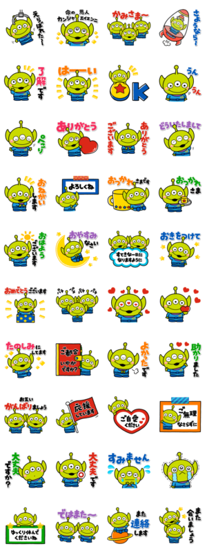 人気イラストレーターいしいともこ描き下ろし! 「トイ・ストーリー」シリーズに登場するエイリアンのスタンプが登場! 日頃の感謝の気持ちをスタンプと共に伝えちゃおう♪ウォルト・ディズニー・ジャパン(株) より発売