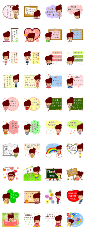 バリエーションいっぱいの「ありがとう」スタンプ。お礼の言葉に便利です。丁寧なやさしい言葉で感謝の気持ちを伝えましょう。