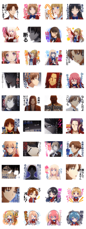 大人気TVアニメ「ようこそ実力至上主義の教室へ」のスタンプが遂に登場! 個性豊かなキャラクターとトークを盛り上げよう♪株式会社エムアップ より発売