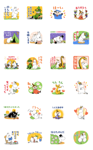 ムーミンと仲間たちが、のんびりごろごろ、食べて眠って冬を過ごすアニメーションスタンプが登場♪日常会話から年末年始のご挨拶まで盛り沢山(あけおめスタンプ2025対象)