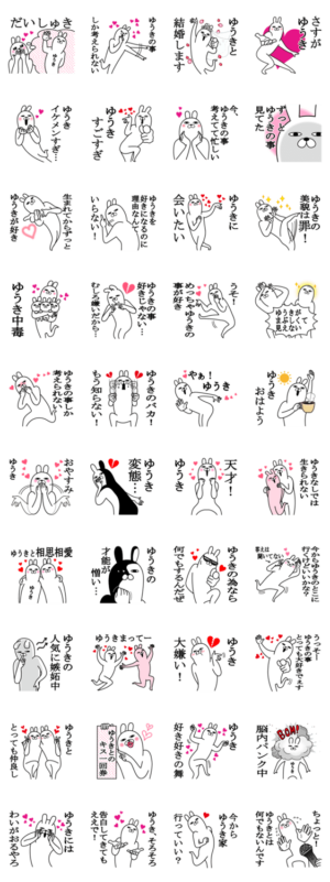 大好きなゆうきに送るスタンプ。ゆうき,勇気,雄貴,優希,祐希,裕貴,勇希,悠希,友樹,祐樹,有希,勇輝,佑樹,裕樹,勇樹,ユウキなどゆうきに送るらぶらぶスタンプです。