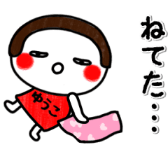 毎日のあいさつや、よく使う言葉の【ゆうこ専用】スタンプ。 陽気で元気なおかっぱの女の子。キュートなリアクションで毎日使える、ずっと使える【デコスケ名前スタンプ】