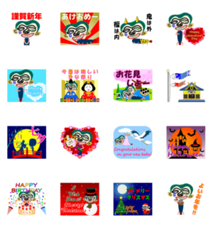年間のイベントに使う事が出来るスタンプです。明けましておめでとうメリークリスマス,バレンタイン,誕生日,結婚おめでとう,出産祝い,ハロウィン,七夕,ひな祭り,花見などmore&proceed より発売
