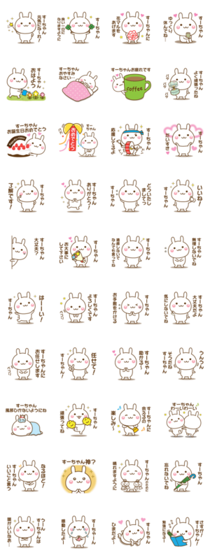 すず,すずか,すずね,すずよ,すみれ,すもも,すずこ,すみえ,すみこ,すばる,すすむ,すぐる,鈴木,鈴村,須藤,村主,勝呂さんなど、全国のすーちゃんを気遣う名前スタンプです。パン より発売