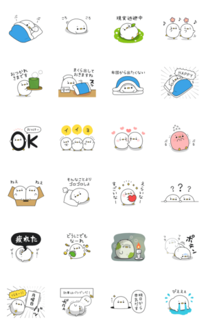 ちょっぴり怠けがちでいつもごろごろしてる白いトリのスタンプです!日常につかえる言葉も♪DECOR より発売