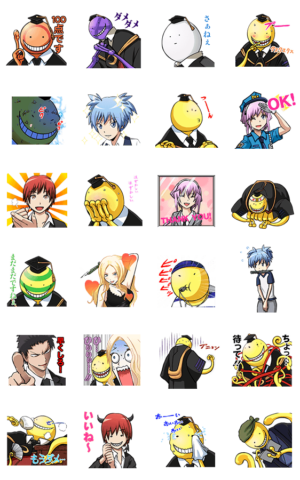 暗殺教室がヌルヌルうごくスタンプになって登場!殺せんせー、渚、カルマをはじめとする人気キャラクターが勢ぞろい!うまく押せるといいですねぇ、ヌルフフフ…