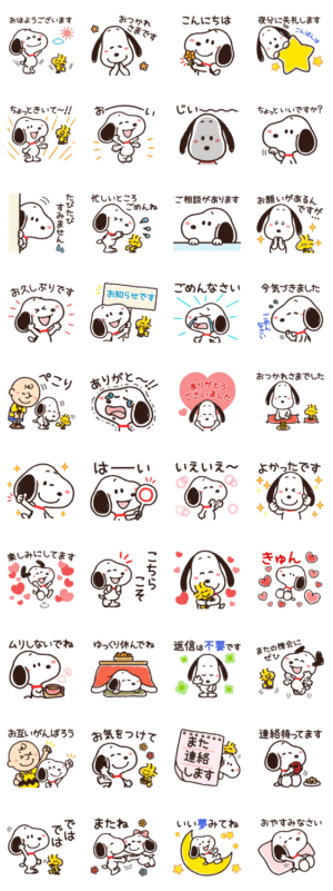 会話のはじまりとおわりのきっかけに使いやすい便利なスタンプが登場!ゆるっとかわいいスヌーピーがトークで大活躍♪【便利なあいづち】とセットで使ってみてね!