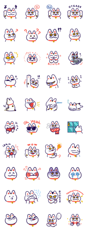 招き猫をモチーフにした猫「カムカム」のスタンプです。ともわか より発売