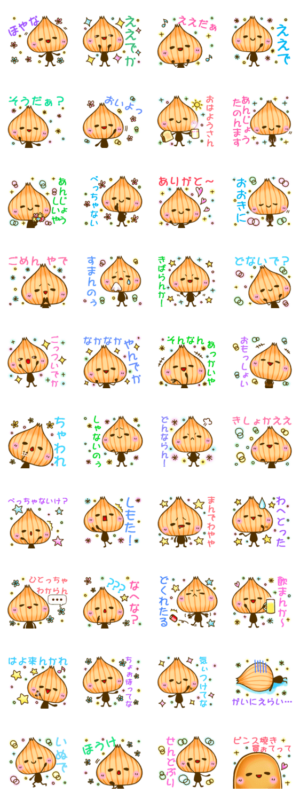 淡路島のカワイイたまねぎ淡路弁スタンプ byさらら98。絵文字も販売中。「おにょまる」で検索!日常で使いやすいあいさつ。「ピンス焼き買ぉてって」もあるよ♪