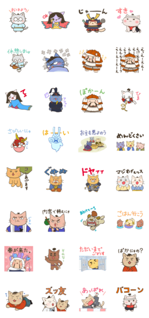 「ねこねこ日本史」のスタンプ第2弾!あの武将たちもついに登場だにゃ★neconeco より発売