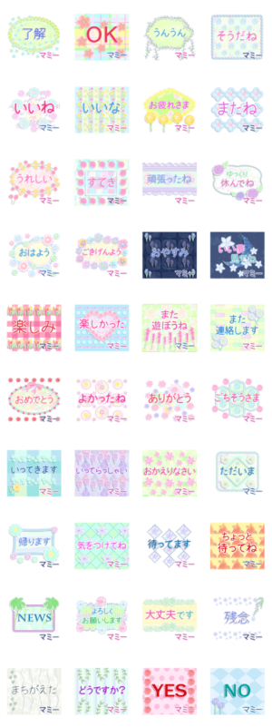 "マミー”名前入り花と柄♪挨拶と返事のダウンロードはこちら↓