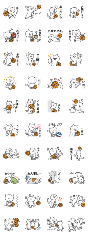 バスケと猫を愛する人のためのスタンプです。ミニバスチーム、中高のバスケ部などでもご活用ください!yamyam より発売